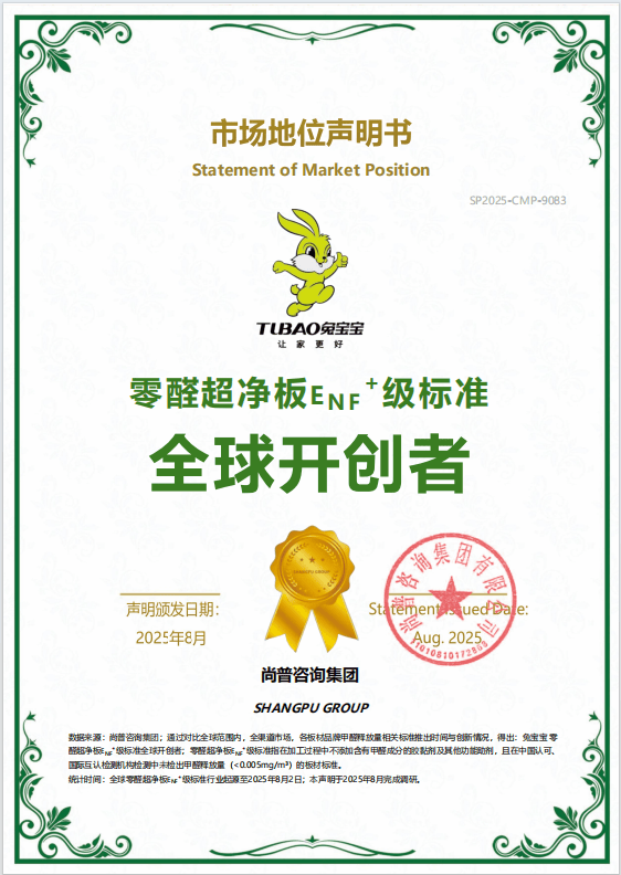 更是贯穿于原材料采购、出产工艺到产物研发每一个环节的步履指南。兔宝宝视鞭策行业绿色历程为己任,充实满脚了现代消费者对家居美学的个性化、多元化逃求,不只为兔宝宝博得了 “ENF+级尺度全球开创者” 的市场佳誉,